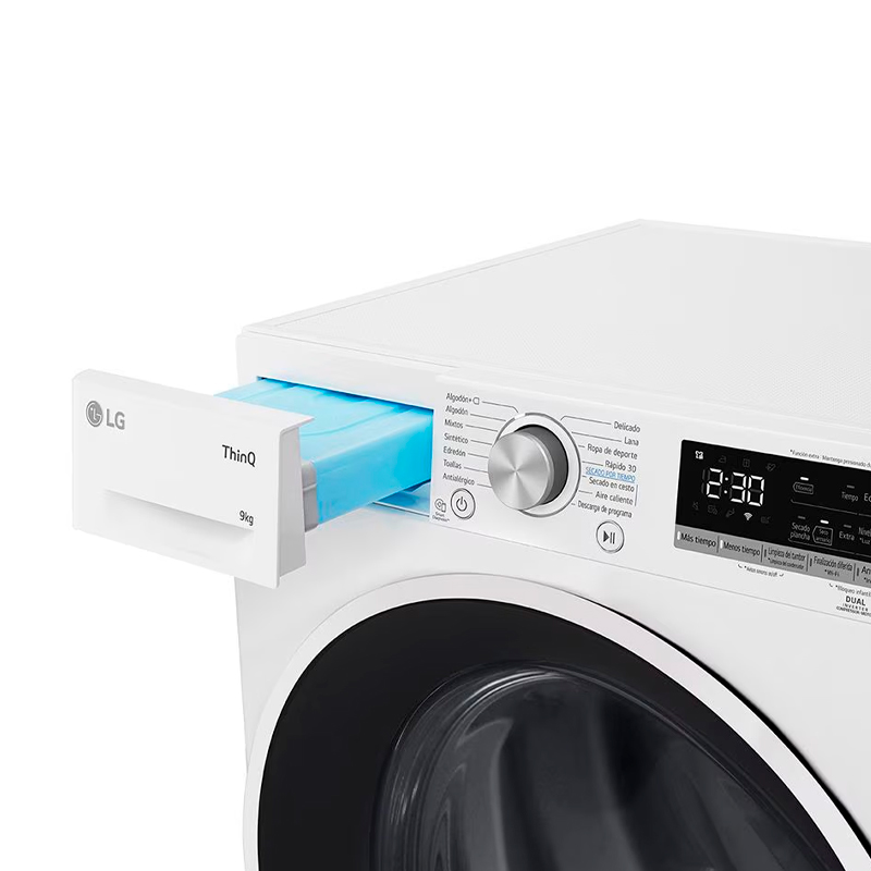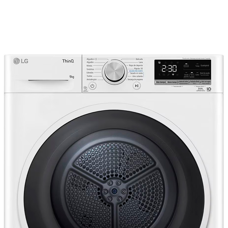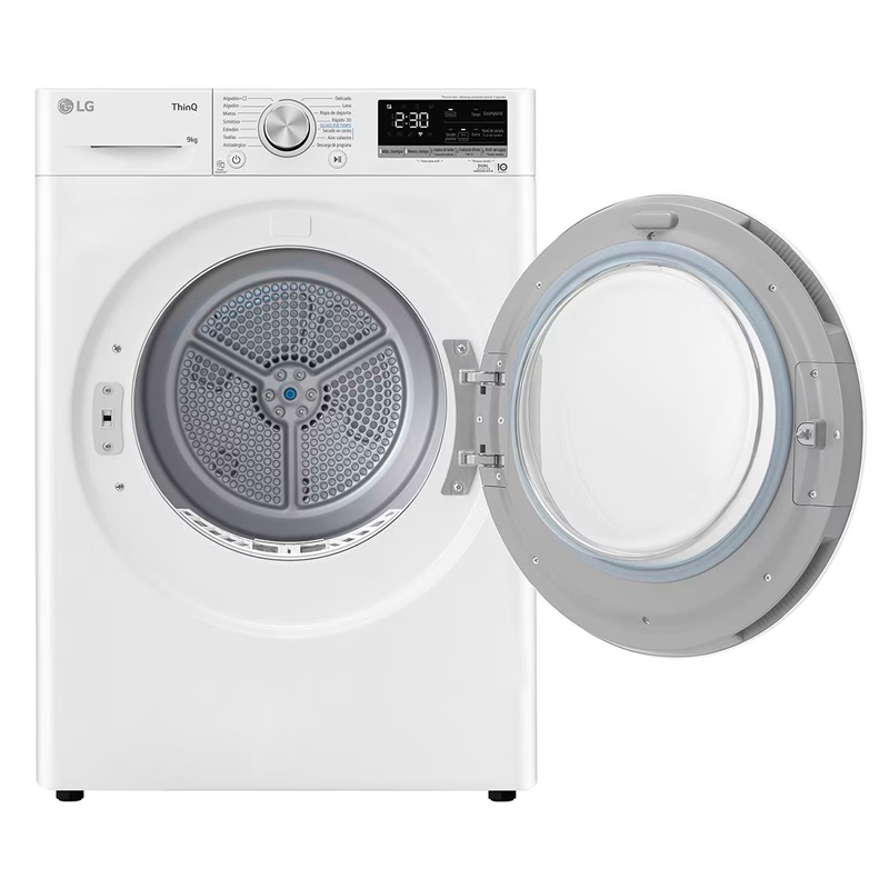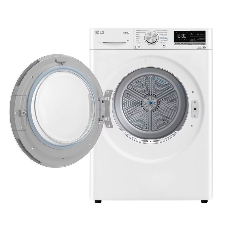 | Funções Extra: | Elevada eficiência de secagem com Dual Inverter Heat Pump™ Poupança de tempo ou energia com EcoHybrid™ Limpeza automática do condensador Proteção eficaz contra alergias Controlo da máquina e download de novos programas via app ThinQ™ Emparelhamento inteligente com máquinas de lavar roupa LG |