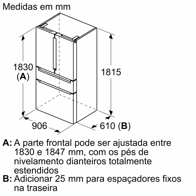 Mais Informação: | Peso: 185.8 kg; Dimensões (AxLxP): 183x90.6x73.6 cm; Sistema de Frio: NoFrost; Nº Prateleiras: 4; Cap. Líquida Refrigerador: 401L; Cap. Líquida Congelador: 171L; |