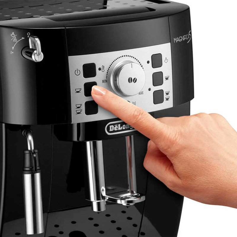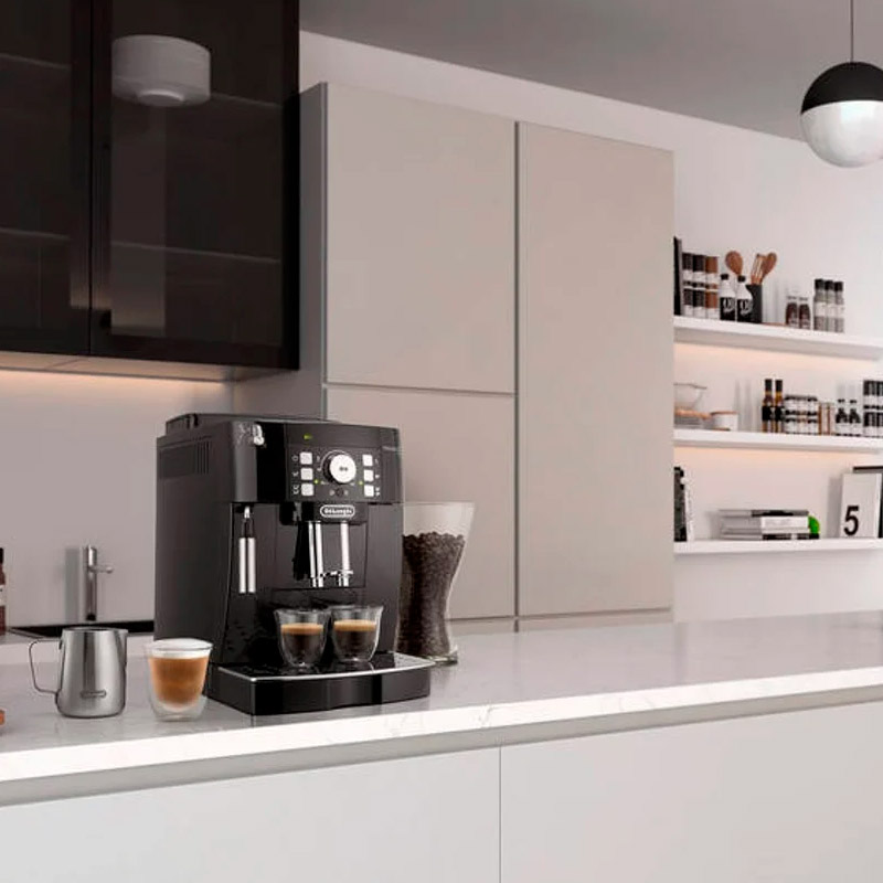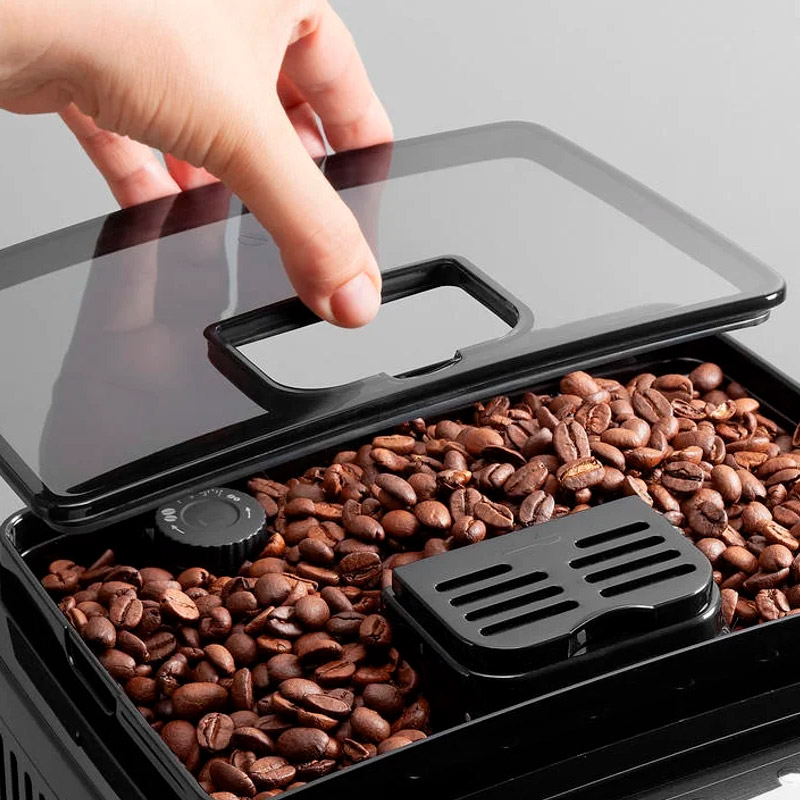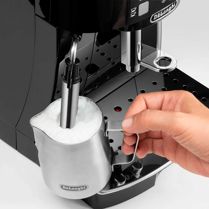 Mais Informação: | Máquina de Café Automática DELONGHI ECAM21.117.B Tecnologia de moagem Tecnologia de moagem integrada para grãos de café acabados de moer e nível de moagem ajustável. Moinhos cónicos em aço, calibrados com precisão. O café mais fresco A tecnologia de moagem integrada mói a quantidade exata de grãos de café, sem deixar qualquer resíduo, garantindo que a sua próxima chávena de café é igualmente perfeita e fresca. Controlo de temperatura O sistema Thermoblock da De'Longhi prepara o seu café à temperatura ideal. Isto é possível graças à tecnologia integrada que aquece apenas a água necessária para cada bebida. Limpeza fácil Para assegurar o nível máximo de higiene, a grelha da bandeja recolhe-gotas é amovível e pode ser lavada na máquina de lavar |